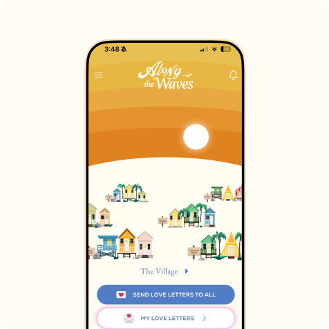 Unlike social media or mom “dating” apps that can feel performative, competitive, or like another ongoing obligation, Along the Waves was built to take the pressure off. You do not need the perfect photo, a witty caption, or the energy to constantly keep up. Instead, we focus on simple, meaningful tools that fit real mom life. Features include mood-ring check-ins with matching mini meditations, six-week rotating micro-groups, love letters (quick notes of encouragement), glimmer journaling, porch-light toggles for new DMs, and The Village, our interactive community of neighborhoods organized by mom stage.