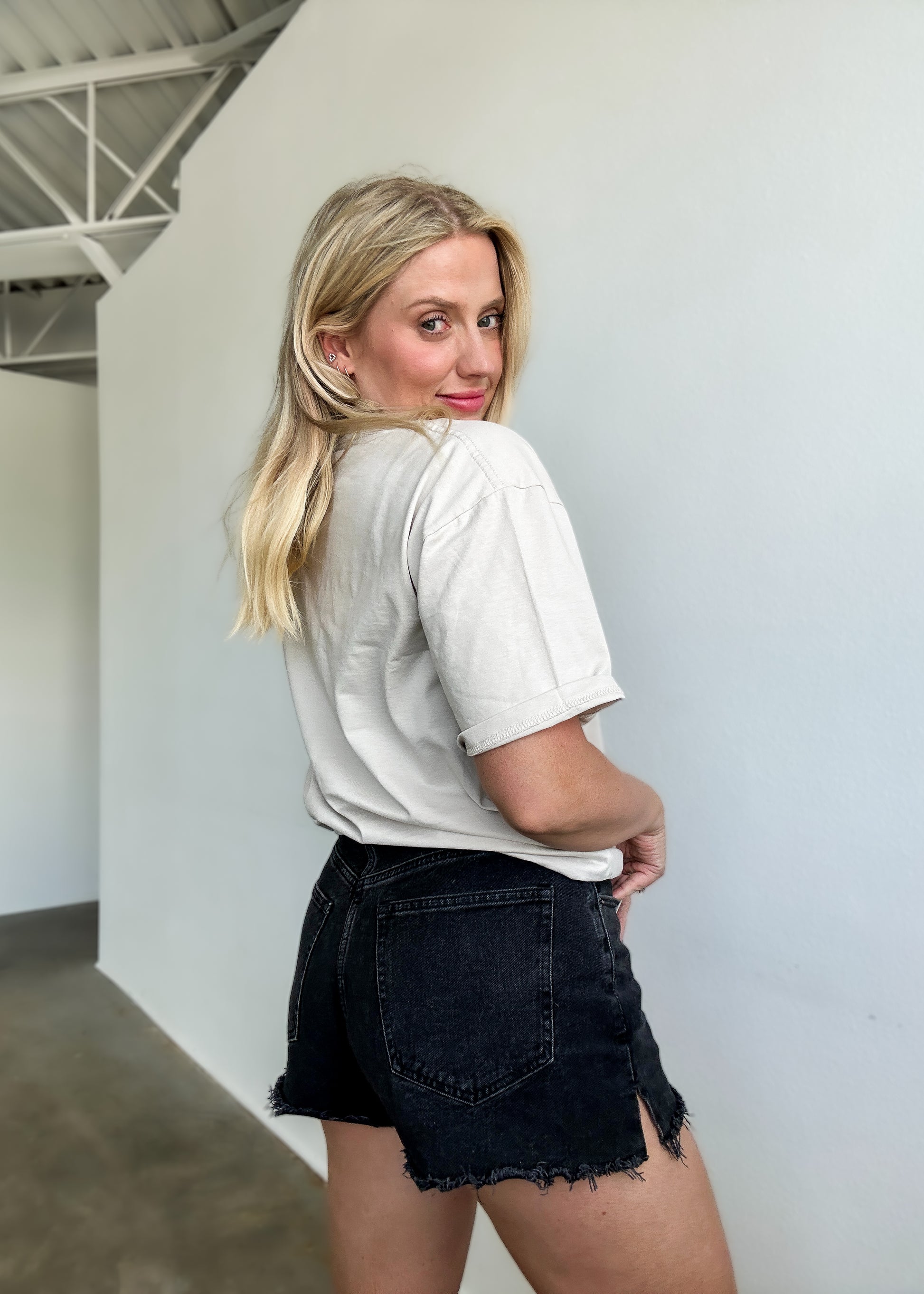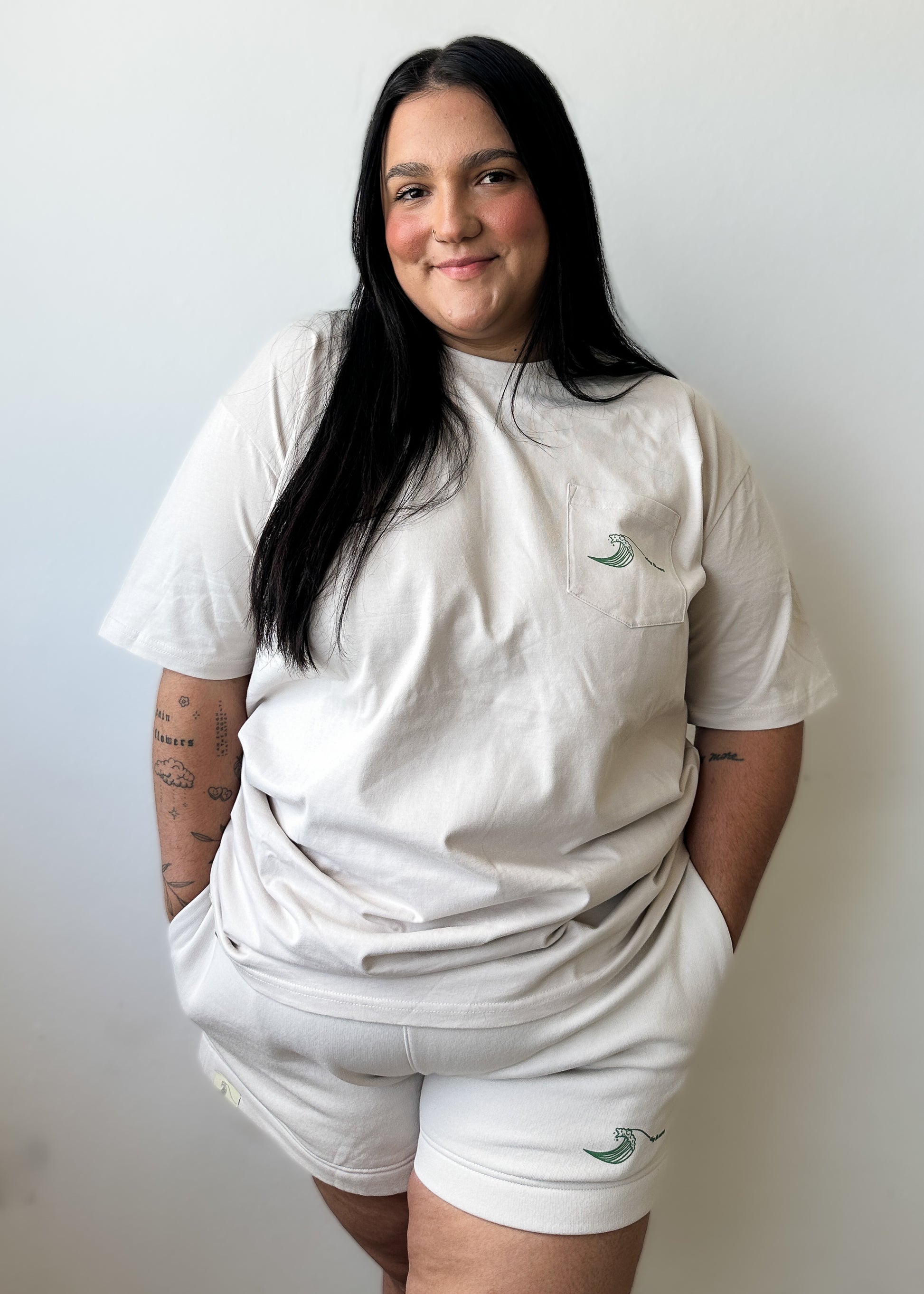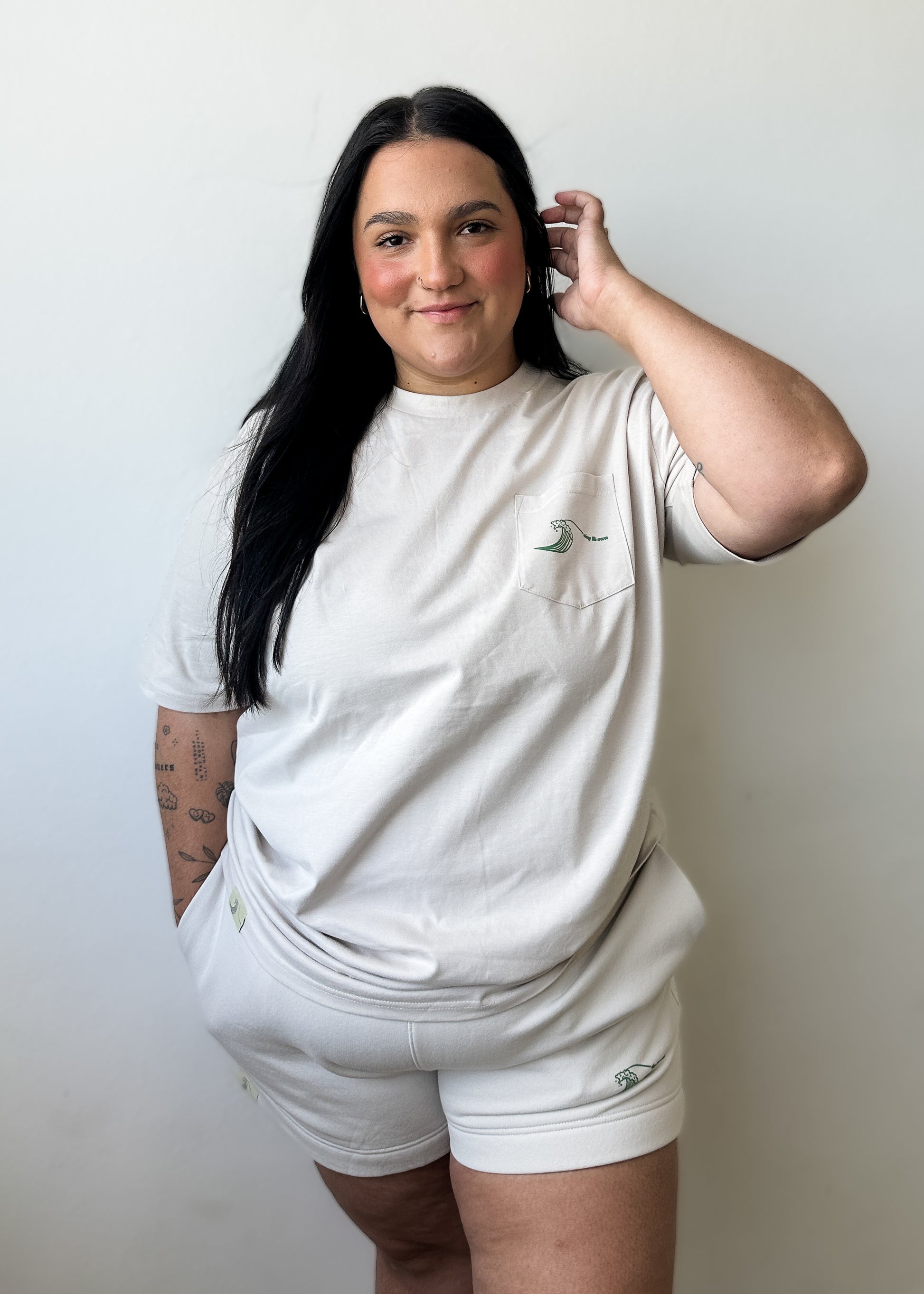 •Relaxed fit, heavyweight tee made from 100% combed cotton, preshrunk fabric. NOTE: this color is technically the same as the crop crew/track shorts, and we wear them together all the time! However because they are two different materials (shirt vs sweats), they capture light differently and can look like different shades in person.