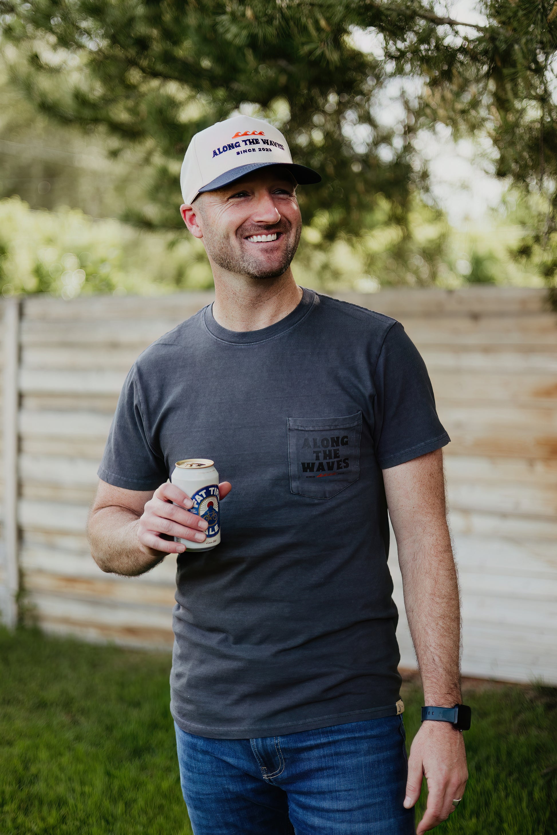 A charcoal tee with 90s surfer energy and everyday dad practicality. With a classic chest pocket and a soft vintage feel, this is the shirt he’ll reach for whether he's grilling dinner or just trying to drink his coffee in peace. Looks good with board shorts or Goldfish crumbs.